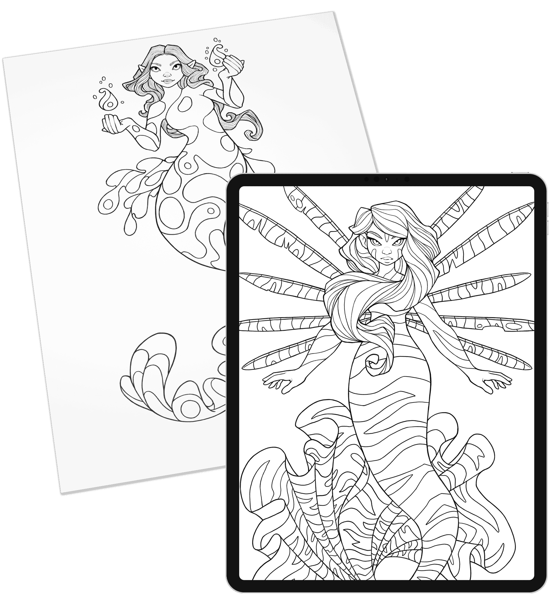 Coloring pages for both traditional and digital coloring